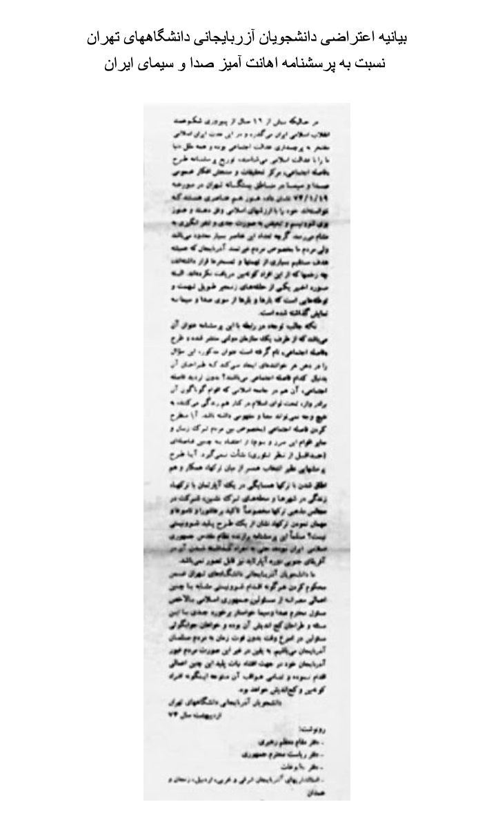 بیانیه اعتراضی دانشجویان آزربایجانی دانشگاههای تهران