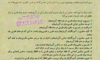 ۲- املای کلمه آزربایجان در در ایران و رسماً همیشه بصورت حرف ذ «آذربایجان»نوشته شده و میشود. در سند رزیم پهلوی بیش از ۱۰ بار با حرف ز آمده یا توسط م. ب جعل شده است. آزربایجان با حرف ز با ابتکار فعالان ملی در ده سال گذشته معمول شده است.